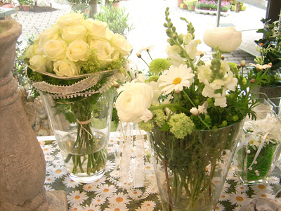 Ob Brautstrauß, Boutonnière (Corsage - Ansteckblume am Anzug-Revers), Autoschmuck, Brautjungfern- und Blumenmädchensträuße und -körbe sowie die gesamte Dekoration für das Standesamt, die Kirche und bei Ihrem Fest.
